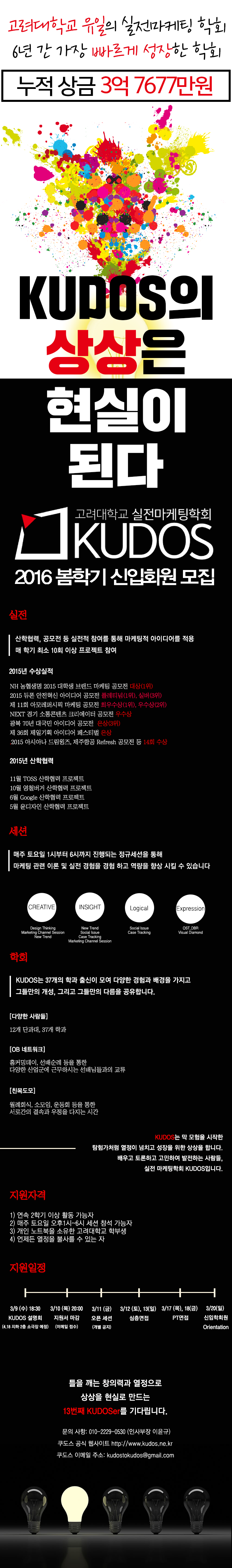 ¢º¢º¢º °í·Á´ëÇб³ ½ÇÀü¸¶ÄÉÆÃÇÐȸ KUDOS¿¡¼ 13¹øÂ° ½ÅÀÔȸ¿øÀ» ¸ðÁýÇÕ´Ï´Ù!
