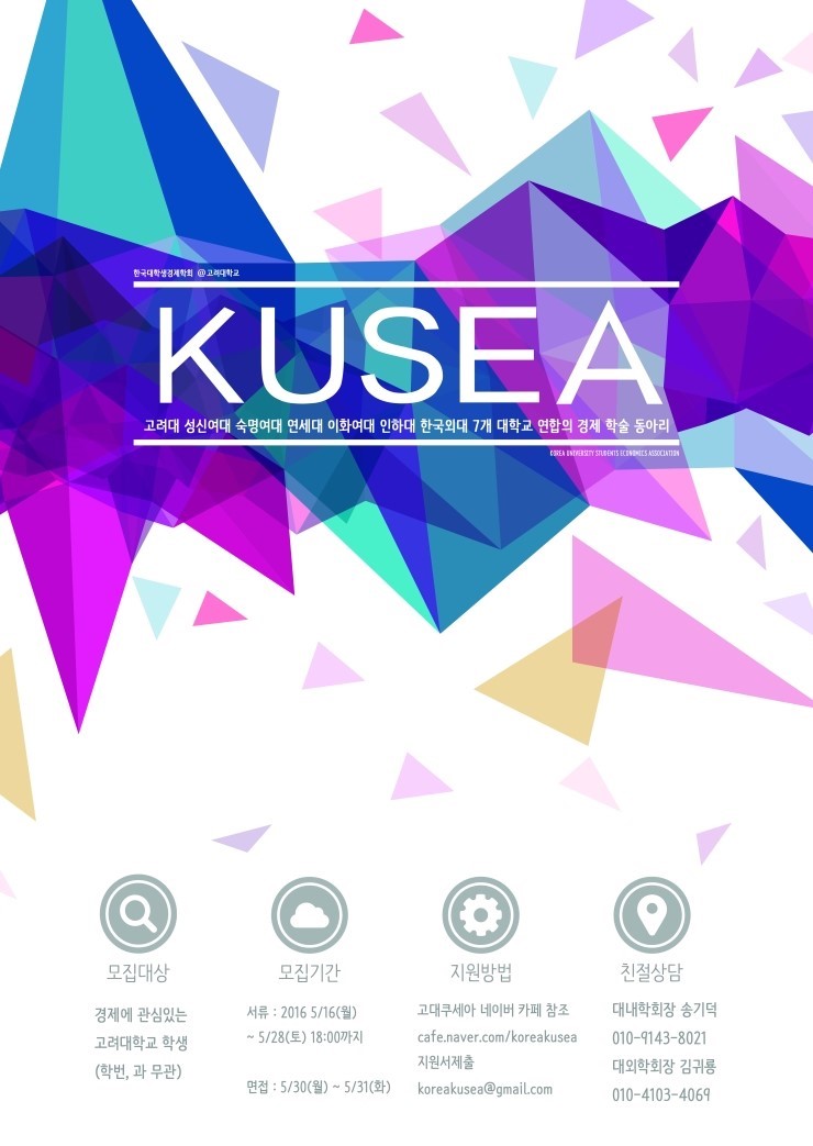 Çѱ¹´ëÇлý°æÁ¦ÇÐȸ (Korea University Students Economics Association, ÀÌÇÏ KUSEA)´Â ¡®ÀÚÀ¯½ÃÀå°æÁ¦¡¯ ¿Í ¡®¹ÎÁÖÁÖÀÇ¡¯¸¦ ÁöÇâÇϰí À̸¦ ¿Ã¹Ù·Î ¹è¿ì°íÀÚ ÇÏ´Â 7°³ ´ëÇÐ(°í·Á´ë, ¿¬¼¼´ë, ÀÌÈ¿©´ë, Çѱ¹¿Ü±¹¾î´ë, ¼÷¸í¿©´ë, ¼º½Å¿©´ë, ÀÎÇÏ´ë) ´ëÇлýµéÀÇ ²Þ°ú ¿Á¤À¸·Î Çѵ¥ ¹¶Ä£ ÇÐȸÀÔ´Ï´Ù. KUSEA´Â Çѱ¹°æÁ¦ÀÇ ¹Ì·¡¸¦ ¼±µµÇÒ ´ëÇлýµéÀÌ ½ÃÀå°æÁ¦¿Í ¹ÎÁÖÁÖÀÇ¿¡ ´ëÇÑ ¿Ã¹Ù¸¥ ÀνÄÀ¸·Î »çȸ¸¦ ¹Ù¶óº¸°í ±×°ÍÀ» ÅëÇÏ¿© Çѱ¹ÀÇ ´Ù¾çÇÑ °æÁ¦ ¹®Á¦µé¿¡ ´ëÇÑ ÇÕ¸®ÀûÀÎ ÇØ°á¹æ¾ÈÀ» Á¦½ÃÇϱâ À§ÇÑ ´Ù¾çÇÑ ÇмúȰµ¿À» Á¦¾ÈÇϰí ÀÖ½À´Ï´Ù.