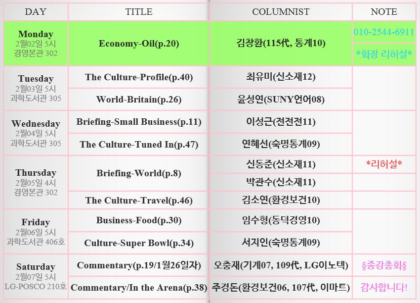 ¸ÅÁÖ ÆòÀÏ 6½ÃºÎÅÍ 8½Ã±îÁö(¹æÇбⰣ 5½ÃºÎÅÍ 7½Ã) ±× ÁÖÀÇ Å¸ÀÓÁö ±â»ç¸¦ Àаí ÇØ¼®Çϸé¼,