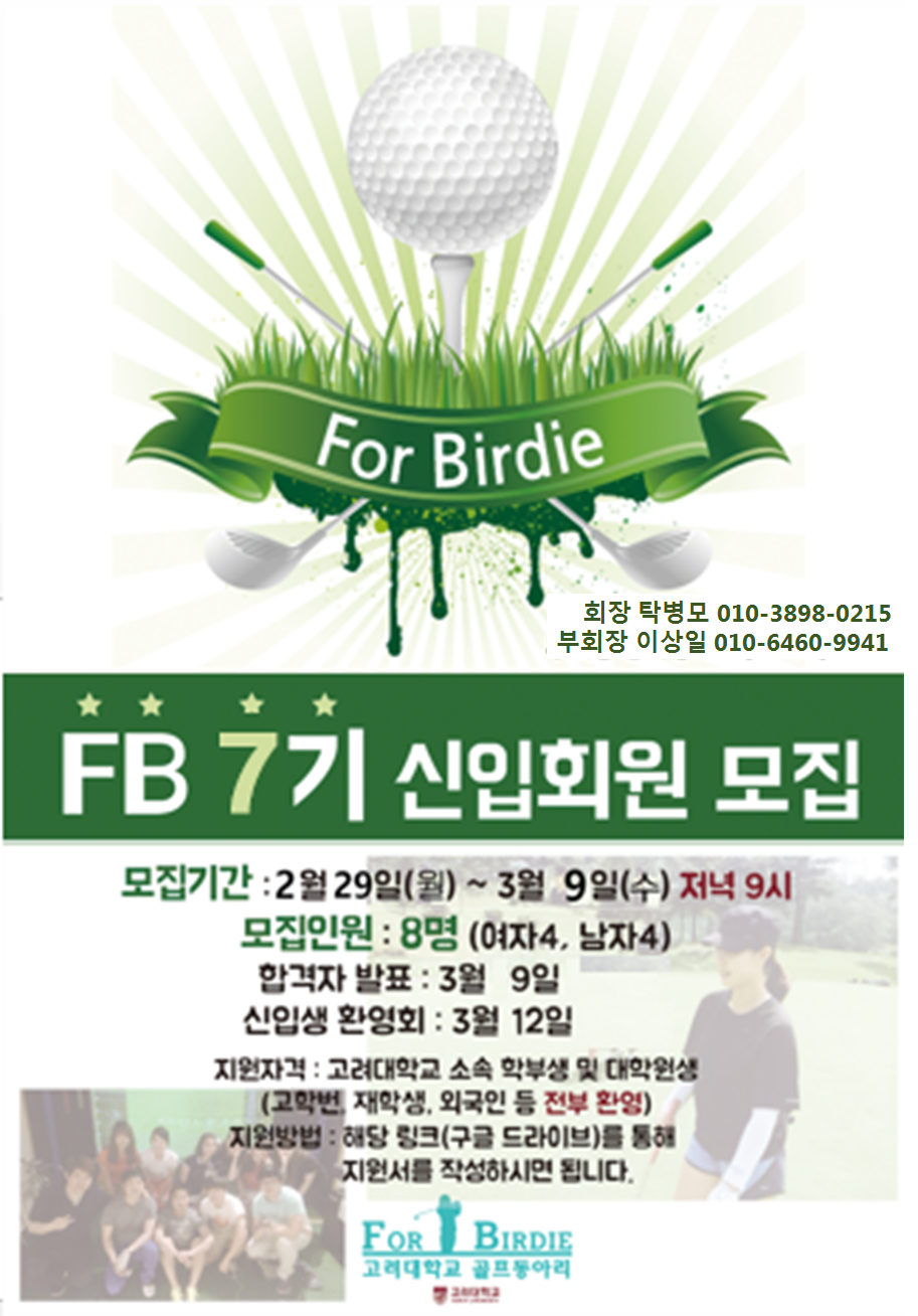 °í·Á´ëÇб³ À¯ÀÏÇÑ °ñÇÁµ¿¾Æ¸®ÀÎ FB(For Birdie)¿¡¼ ¿Á¤ ³ÑÄ¡´Â ½ÅÀÔȸ¿øÀ» ¸ðÁýÇÕ´Ï´Ù!