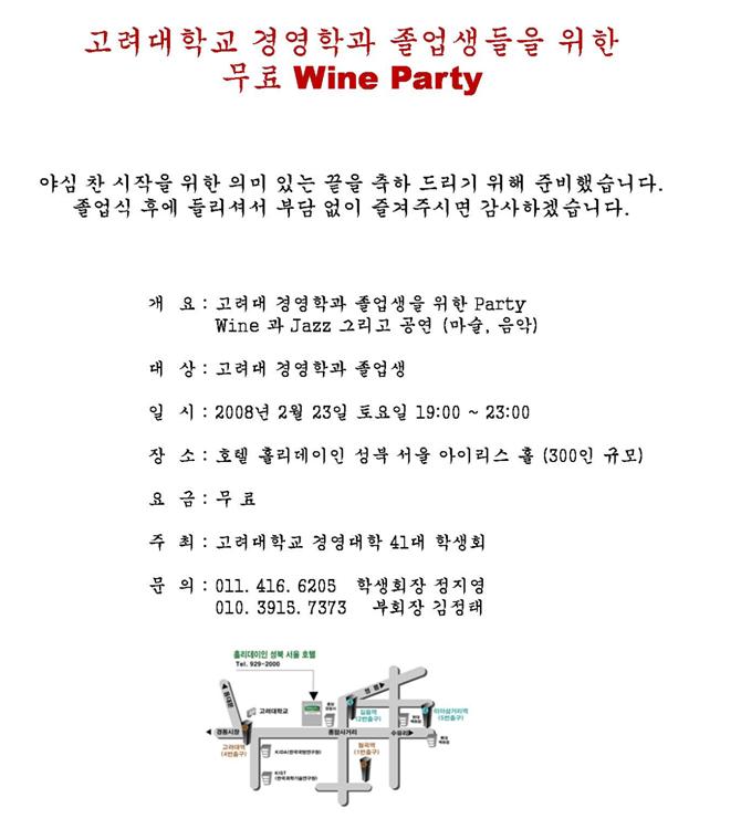 2008 °Ü¿ï °í·Á´ë °æ¿µÇаú Á¹¾÷»ýµéÀ» À§ÇÑ ¹«·á Wine Party